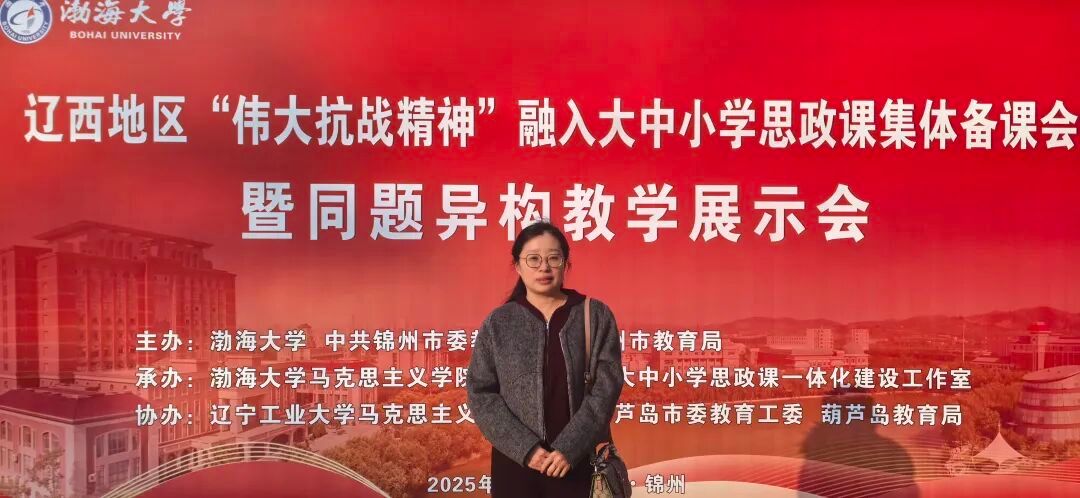 11月8日,为纪念中国人民抗日战争暨世界反法西斯战争胜利80周年,全面落实习近平总书记关于学校思政课建设的重要指示,渤海大学与锦州市教育局、葫芦岛市教育局、锦州市教师进修学院联合举办“伟大抗战精神”融入大中小学思政课集体备课会暨同题异构教学展示会。我校思政课教师陈晓庆副教授应邀参会。