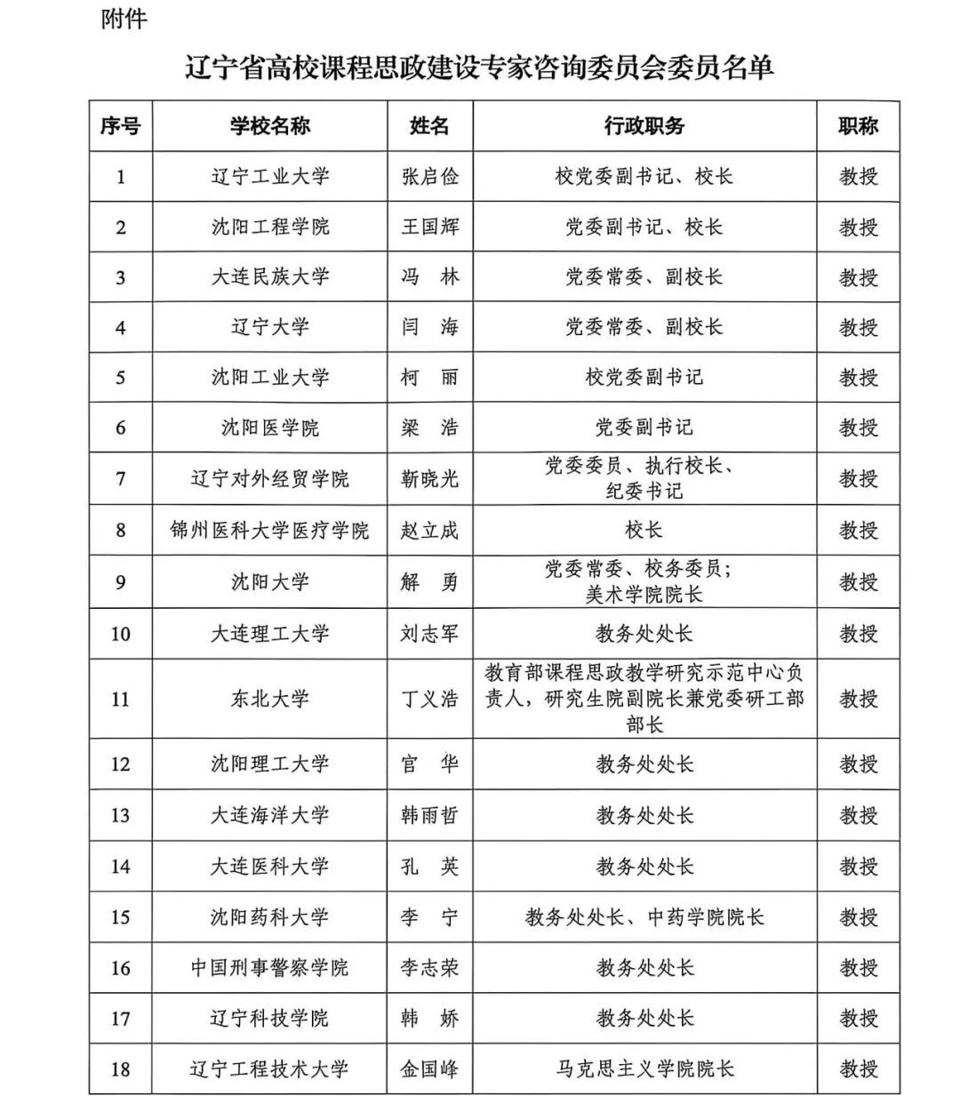 近日,辽宁省教育厅公布辽宁省高校课程思政建设专家咨询委员会委员名单,我校马克思主义学院院长金国峰教授入选,全省仅有30人入选。