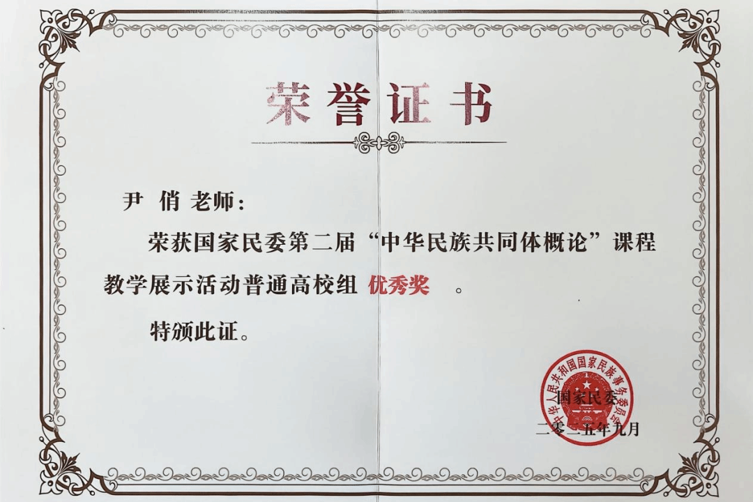 荣获全国“中华民族共同体概论”课程教学展示优秀奖