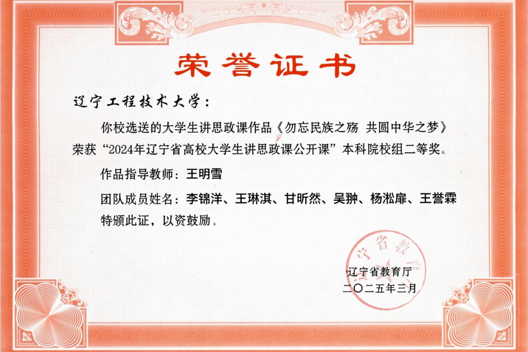 3月15日,获辽宁省高校大学生讲思政课公开课二等奖