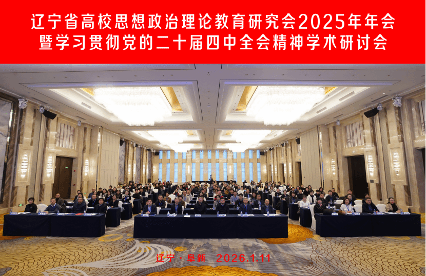 2026年1月11日,辽宁省高校思想政治理论教育研究会2025年年会暨学习贯彻党的二十届四中全会精神学术研讨会在辽宁阜新隆重举行。本次会议由中共辽宁省委教育工委、辽宁省教育厅指导,辽宁省高校思想政治理论教育研究会主办,辽宁工程技术大学马克思主义学院与大连理工大学马克思主义学院联合承办。来自全省80余所高校的马克思主义学院负责人、思政课教师代表、专家学者等近200人齐聚一堂,围绕“学习贯彻党的二十届四中全会精神,推动新时代高校思政课内涵式发展”这一主题展开深入研讨。